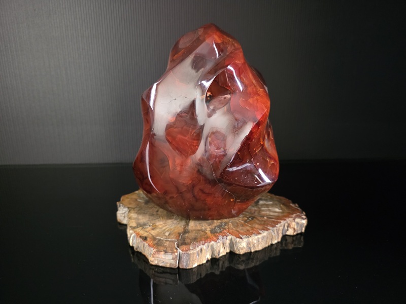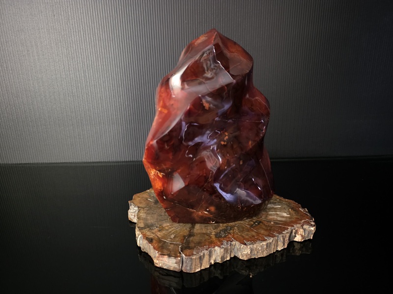 Stilizirano obrađeni polirani mineral u obliku plamena (Flame, eng.).