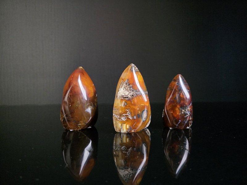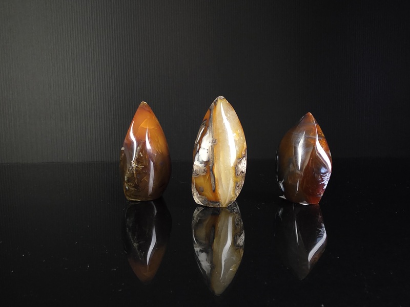 Stilizirano obrađeni polirani mineral u obliku plamena (Flame, eng.).