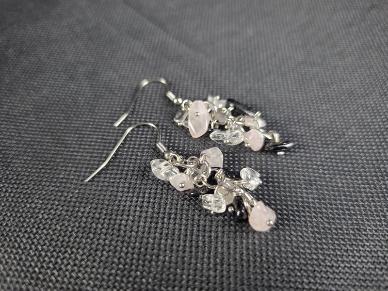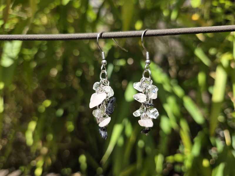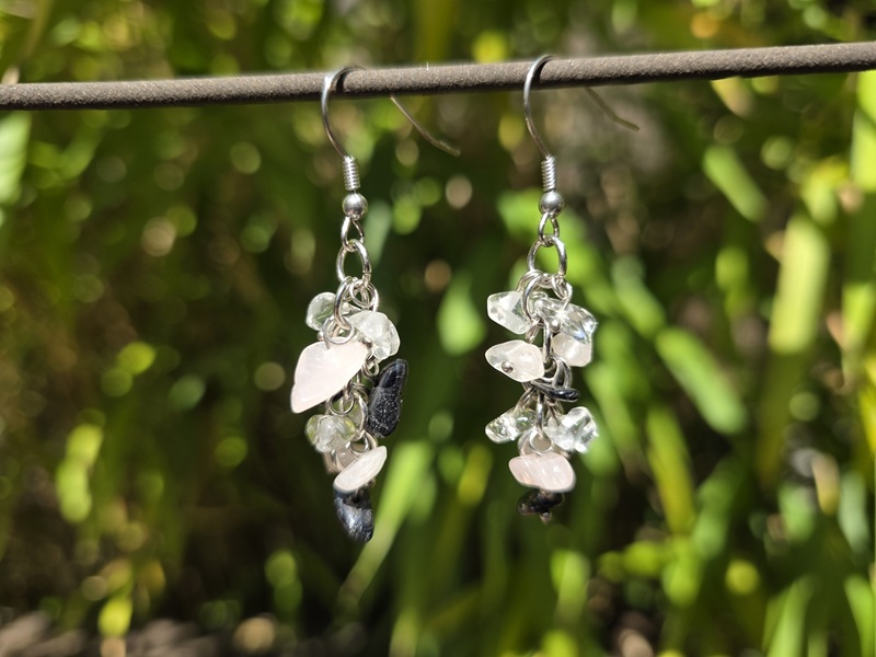 Kombinirana ogrlica od 3 različite vrste kristala koja kad se preklopi vizualno daje atraktivnu trostruku ogrlicu u 3 srodne boje. Kristalni grumenčići slobodnog oblika. Prirodni oblik podsjeća na lijepe zaobljene riječne oblutke. Pogledajte i odgovarajuću narukvicu i naušnice za uši.
