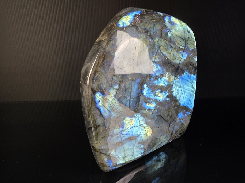 Za razliku od većine minerala, boja labradorita ne dolazi od svjetlosti koja se reflektira s površine ovog minerala. Umjesto toga, spektar boja koji se vidi uzrokovan je svjetlošću koja se odbija od duple površine unutar samog minerala. Njegov odbljesak boja može sadržavati zlatnu, plavu, zelenu, žutu, sivu, narančastu, crvenu, pa čak i ljubičastu boju.