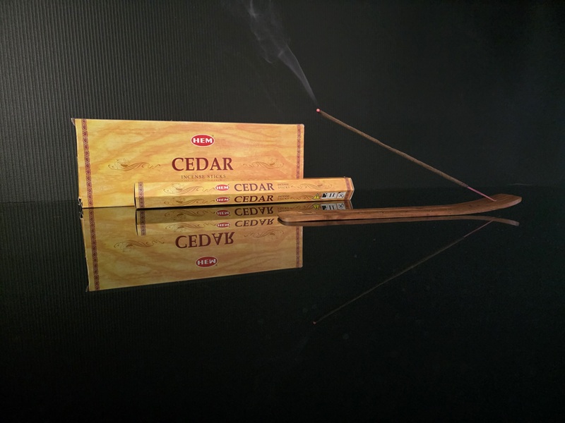 Mirisni štapići s cedrom, drvom koje može živjeti više od tisuću godina. Obično se miris cedra nudi u šamanskom ritualu kao ponuda duhovima biljnog svijeta.. Miris cedra povezuje nebo i zemlju, tijelo i duh. Iz snažne povezanosti raste sklad i harmonija. Drvo cedra potječe iz Sjeverne Amerike koje doseže visinu od preko 35 metara, s promjerom od preko 1,5 metra. Ovo je vrlo popularna smjesa kod Indijanaca i starosjedioca obiju Amerika. Osim što povezuje Elemente, miris cedra poboljšava harmonično raspoloženje i donosi sreću. Rituali kađenja s cedrom ojačat će jezgru duše, a povećava se i veza s majkom Zemljom.