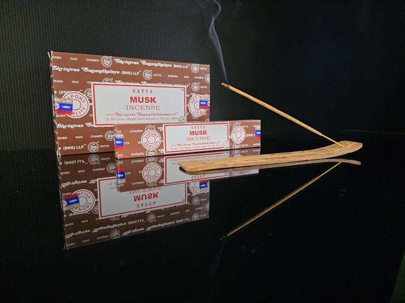 Mirisni štapići:Satya-Musk. Smirujući učinak opušta um i pomaže u izvođenju rituala s boljom koncentracijom, molitva koja se nudi mirnim umom djeluje poput procesa meditacije. Miirisni štapić ima svoje duhovno značenje, potpuno sagorijeva u pepeo, a opet ispunjava zrak ugodnim mirisom. Ovaj ritual u osnovi označava ljudsku vrlinu žrtvovanja sebe za društvo. Štapići se koriste i kao osvježivači zrakai tijekom bilo kojeg dana da nam osvježe i harmoniziraju energiju u prostoru.